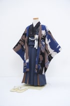 モチーフの龍と虎は力強さを表し、毛並みのような銀箔も合わせたデザインの着物です。アコーディオン柄の袴が動きが出るとおしゃれにまとめてくれています。