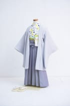 幾何学模様が特徴的な当店のオリジナル着物。グレーとネオンイエローのバイカラーがおしゃれで、お子様にも大人気!兄弟でもお揃いが可能です。