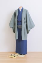 明るい色味の着物と羽織でお顔写りが明るくなります。お子様のPOPな着物にも合わせやすくお洒落な一着です。 サイズ:XL (身長の目安175cm〜)