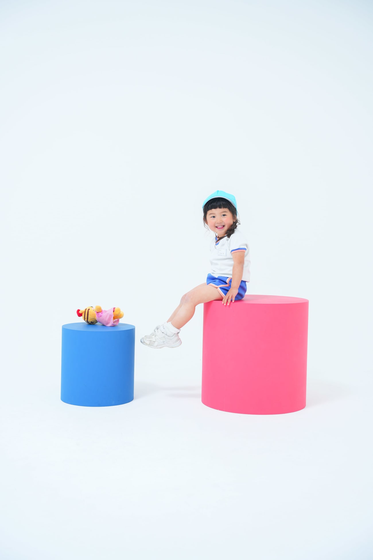 真っ白のスタジオで元気にはしゃぐ二人が