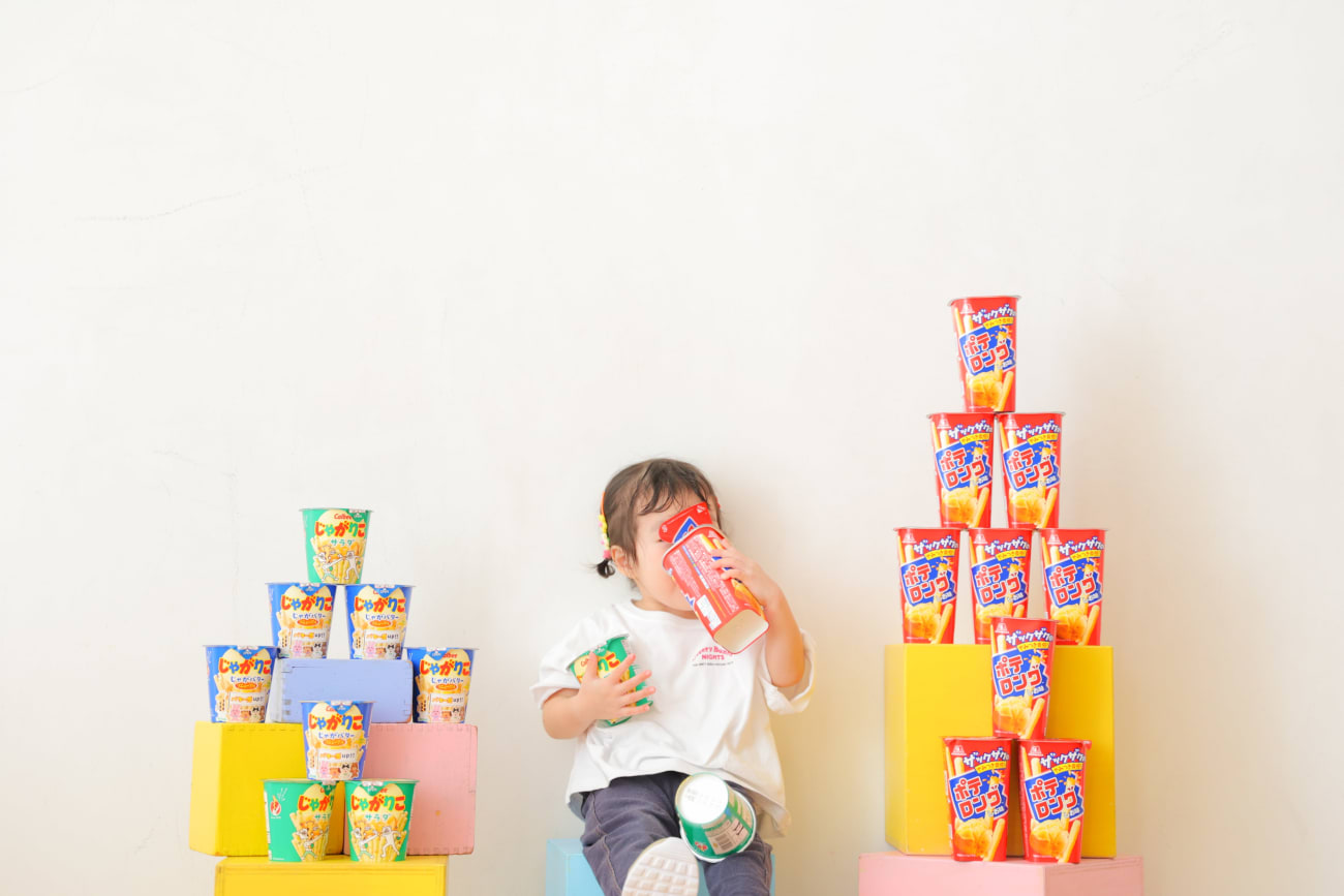 お菓子のタワーに囲まれて大好きなお菓子をかかえて大きいお口でいっぱい食べていました^^