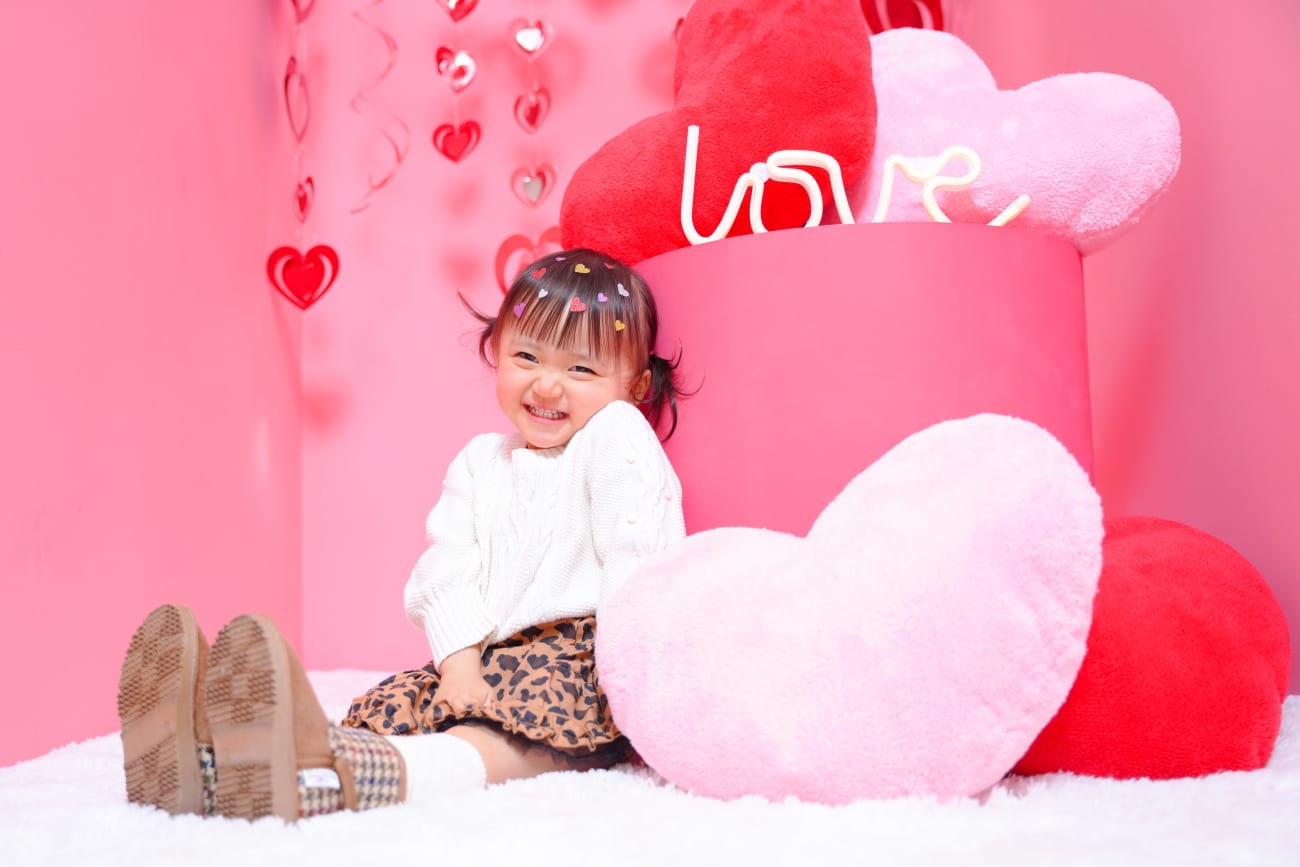 白いニットや可愛いブーツをお持ちいただくとバレンタイン感たっぷりの可愛い写真に仕上がります🧶