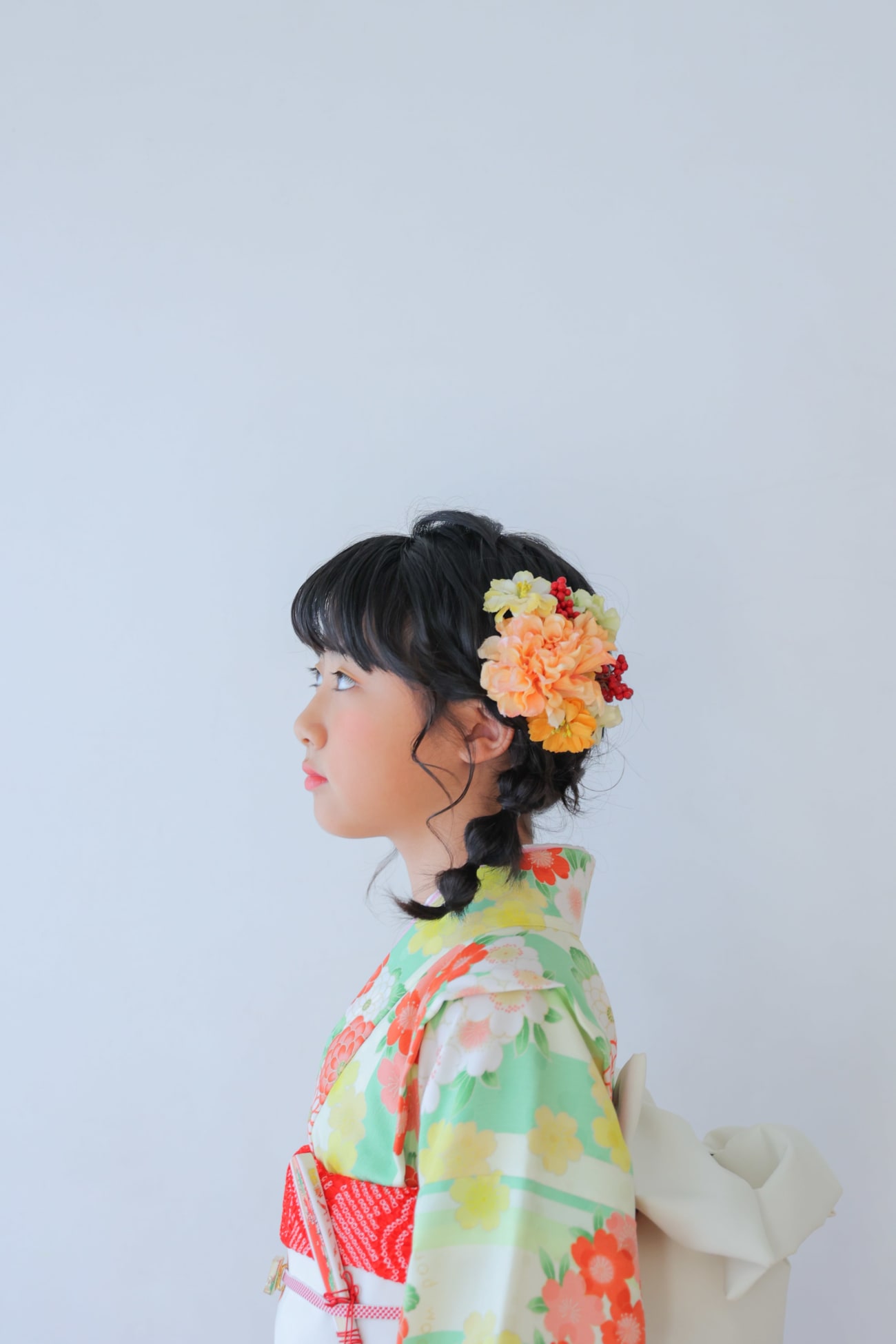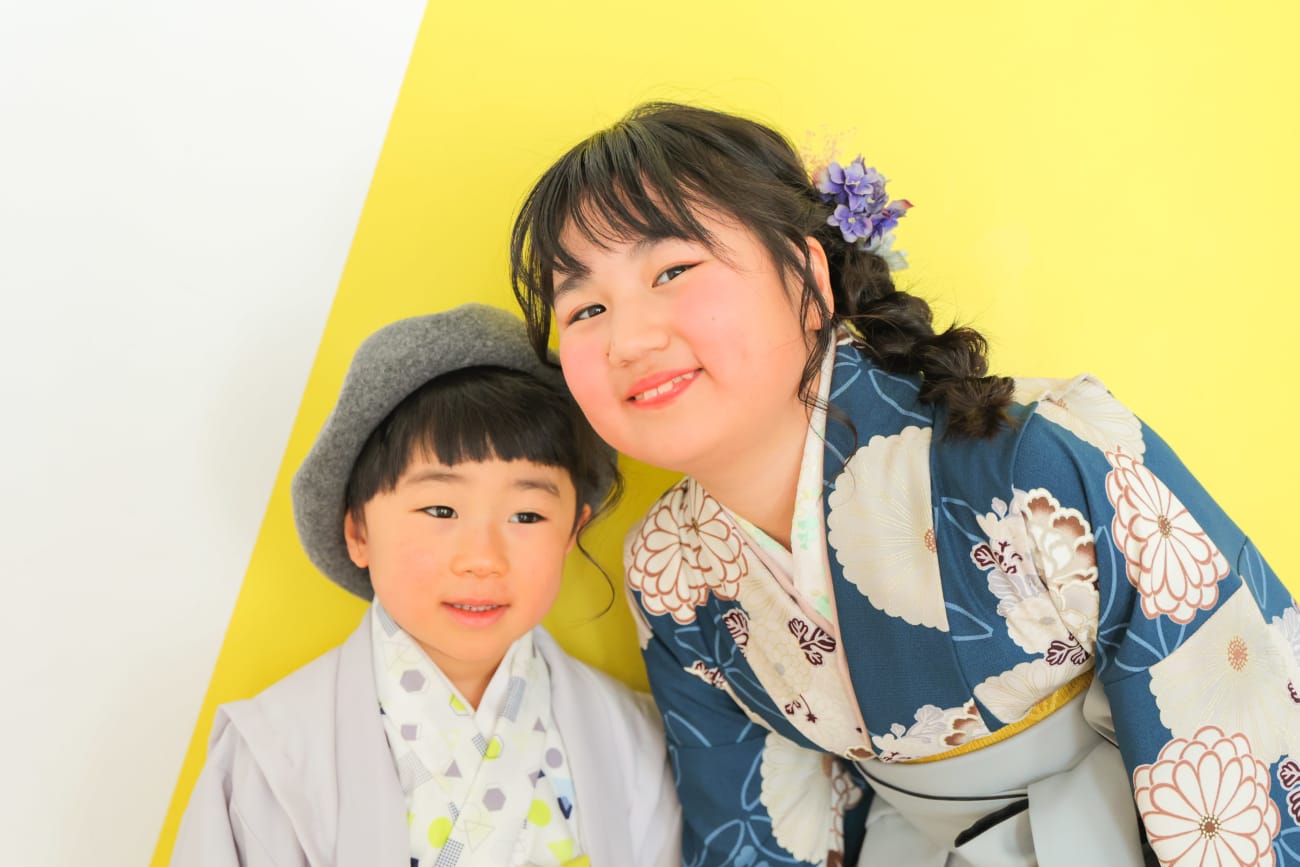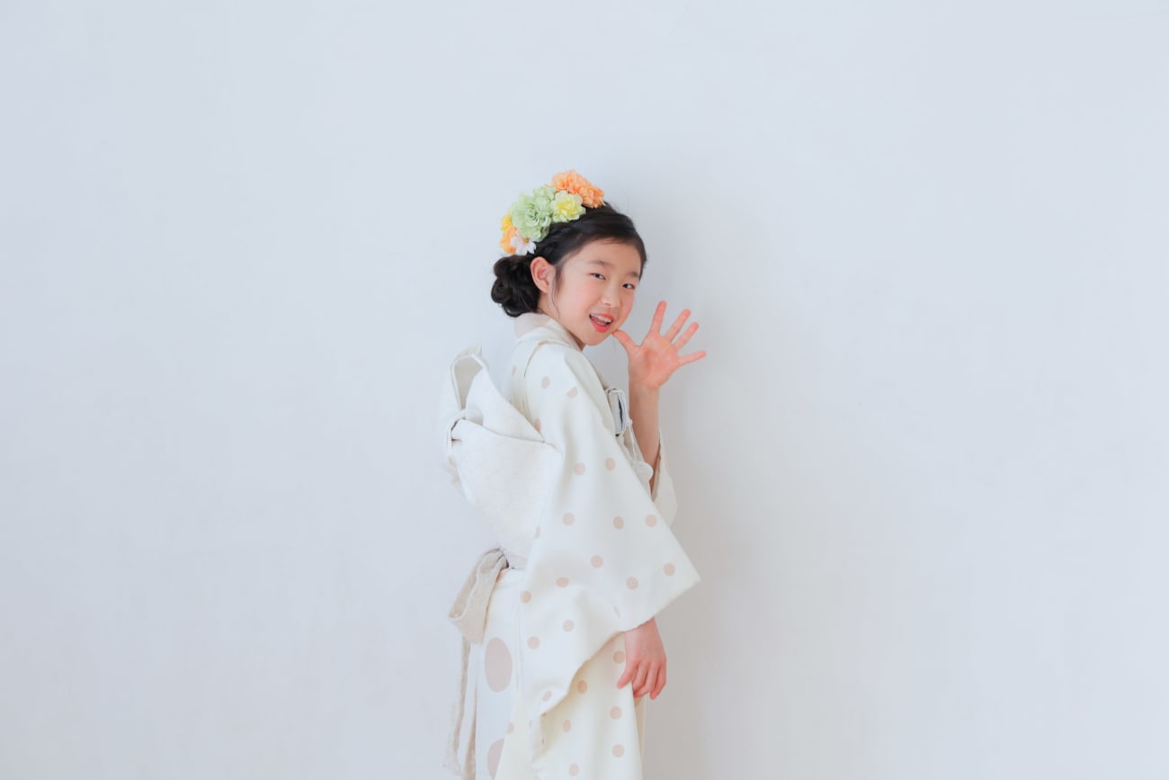 黄緑にお花をあしらった着物は、明るくうつるので