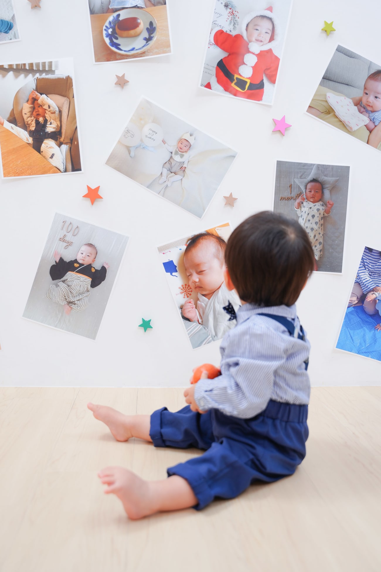 お子様の成長が感じられる生まれた頃からの写真を大きく印刷して持ってきてくださると、