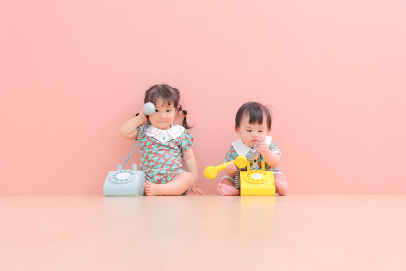 洋服に合わせて色違いのお電話で一緒に仲良くもしもーし!👂️📞
