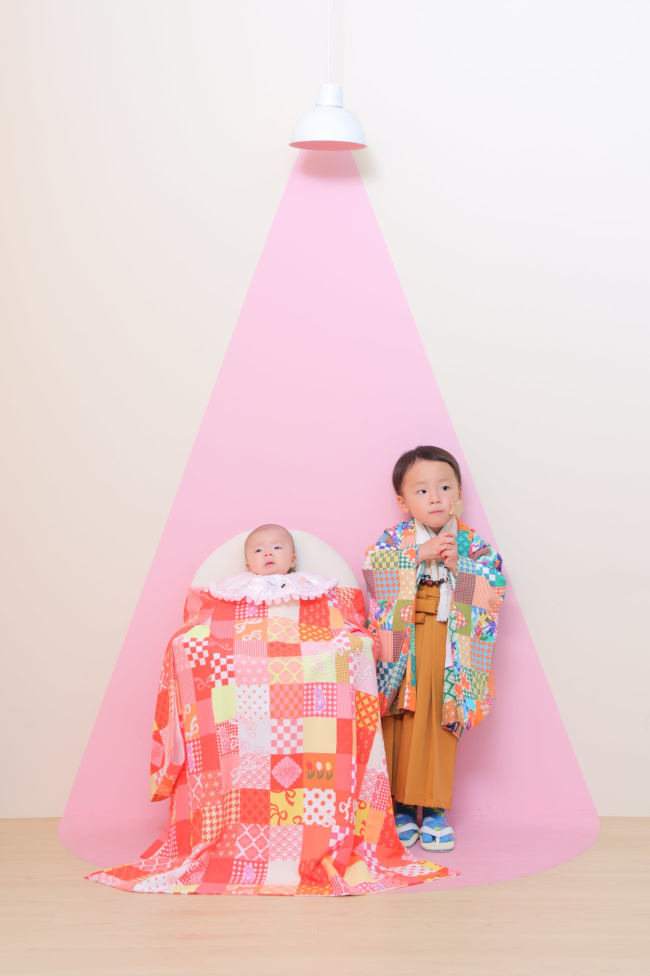 HAPISTAの七五三撮影で大人気のパッチワーク柄のお着物が