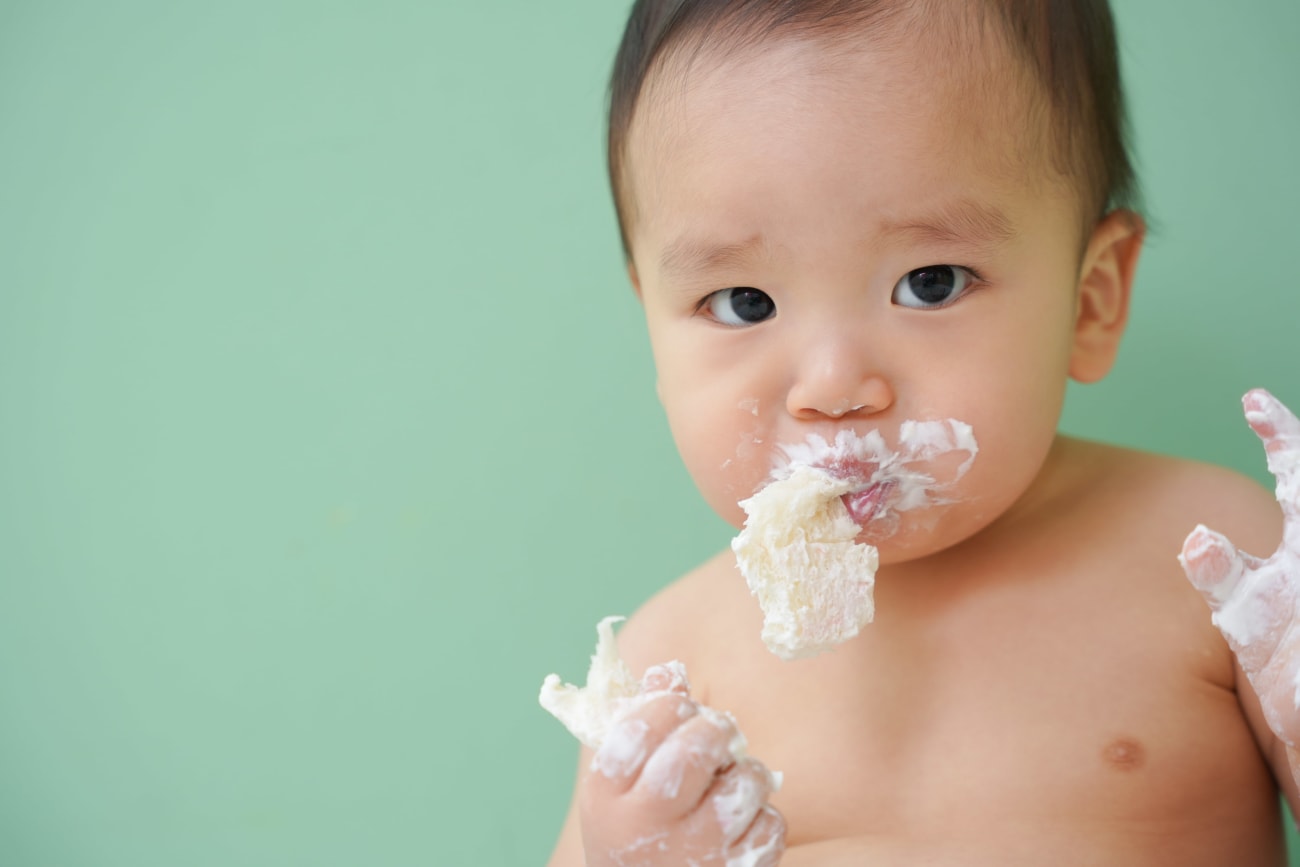 初めての誕生日を迎える赤ちゃんに、豪快にケーキを崩しながら食べてもらおうというバースデーイベントのひとつです🍰