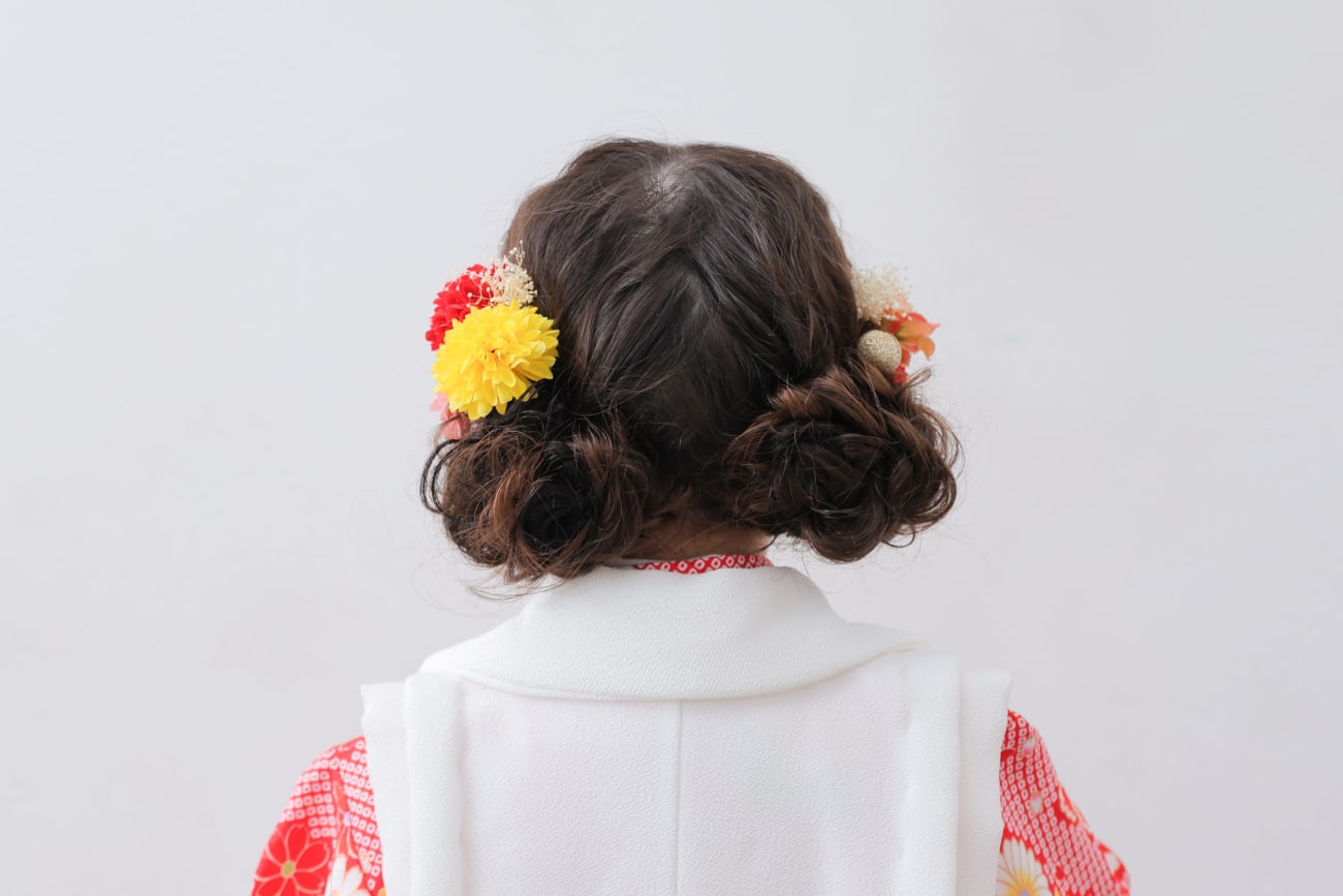 選んでいただいた髪型は、ふわふわのお団子!